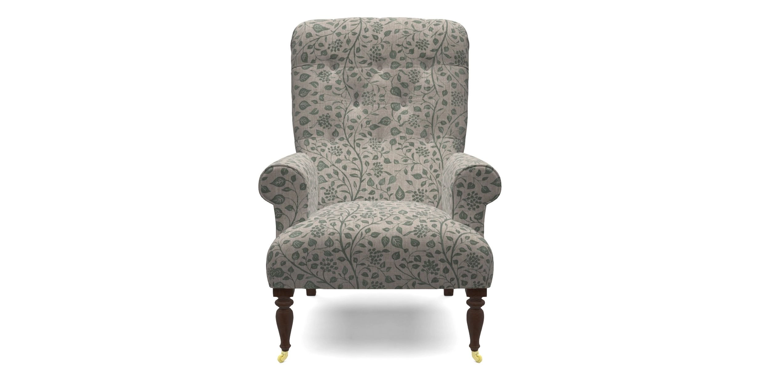 Chelsham has a timeless, tailored look, with scroll arms and deep buttoning across the back and inner arms. Inspired by a Victorian armchair in the home of a friend of our founder, it combines neat proportions with a deep, seat and high, perfectly judged back — ideal for resting your head.