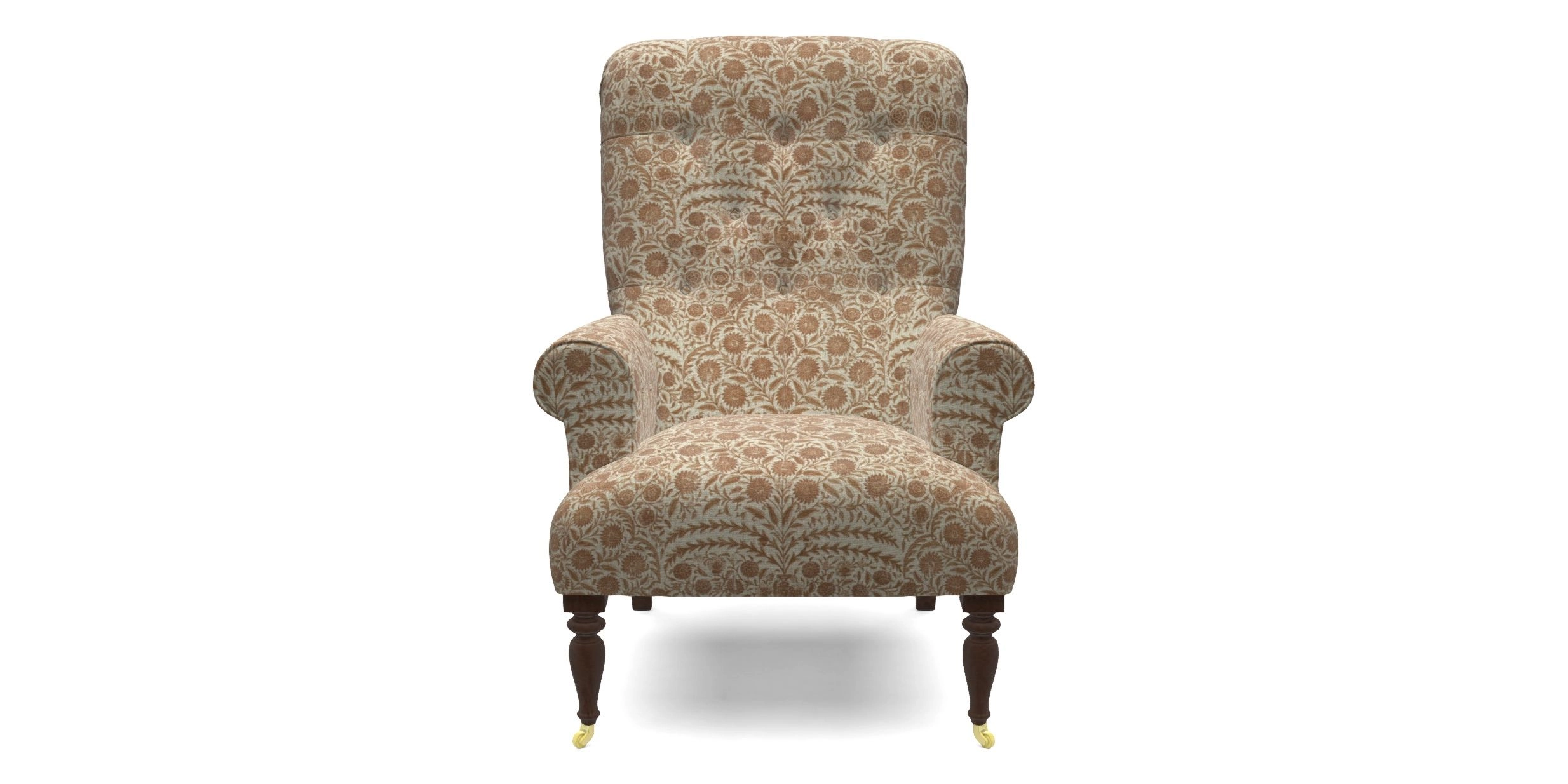 Chelsham has a timeless, tailored look, with scroll arms and deep buttoning across the back and inner arms. Inspired by a Victorian armchair in the home of a friend of our founder, it combines neat proportions with a deep, seat and high, perfectly judged back — ideal for resting your head.