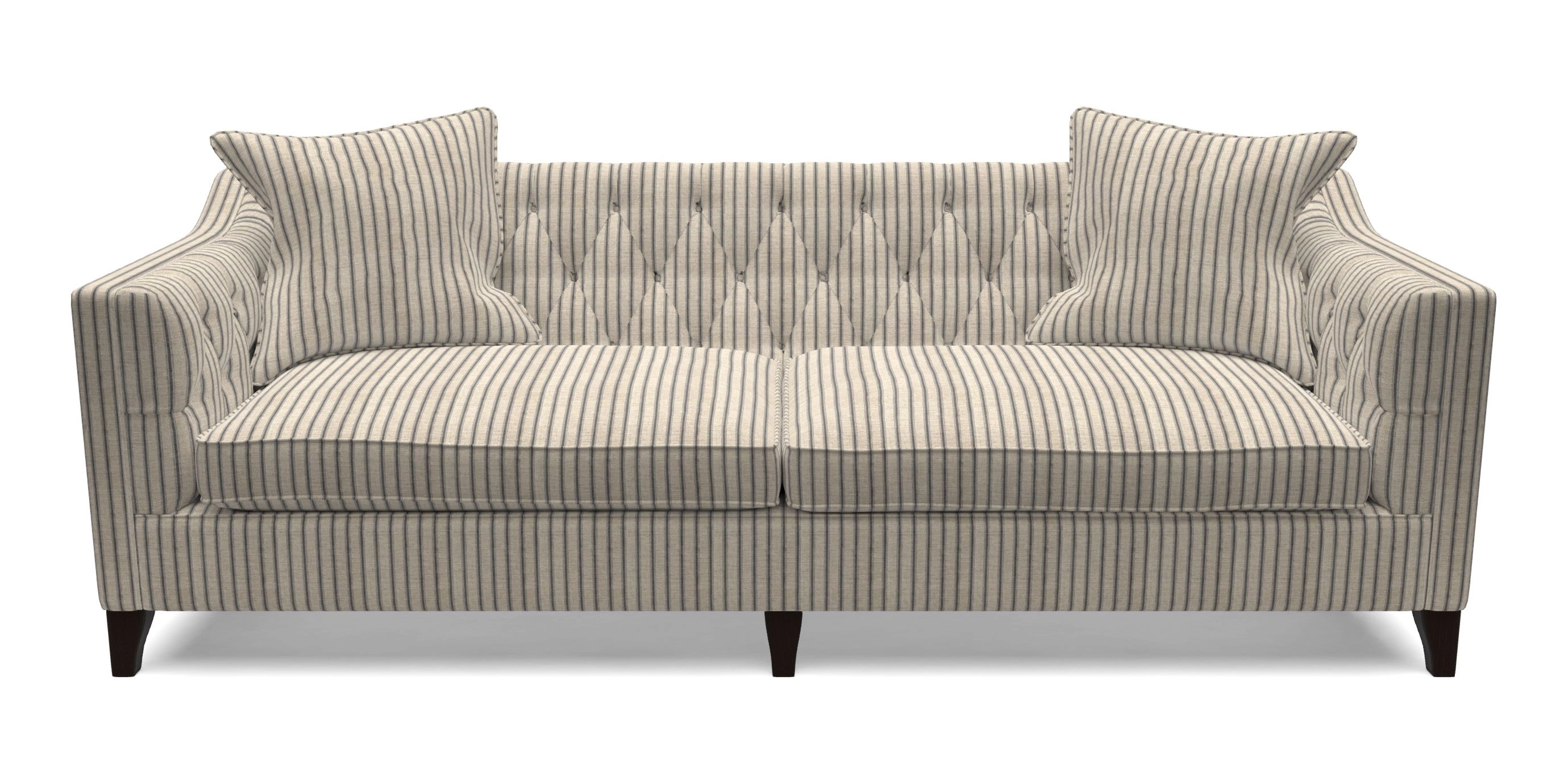 • Haresfield Dipped Arm Bespoke 4 Seater Sofa in Cloth 18 - Stripe Ticking : Bible Black