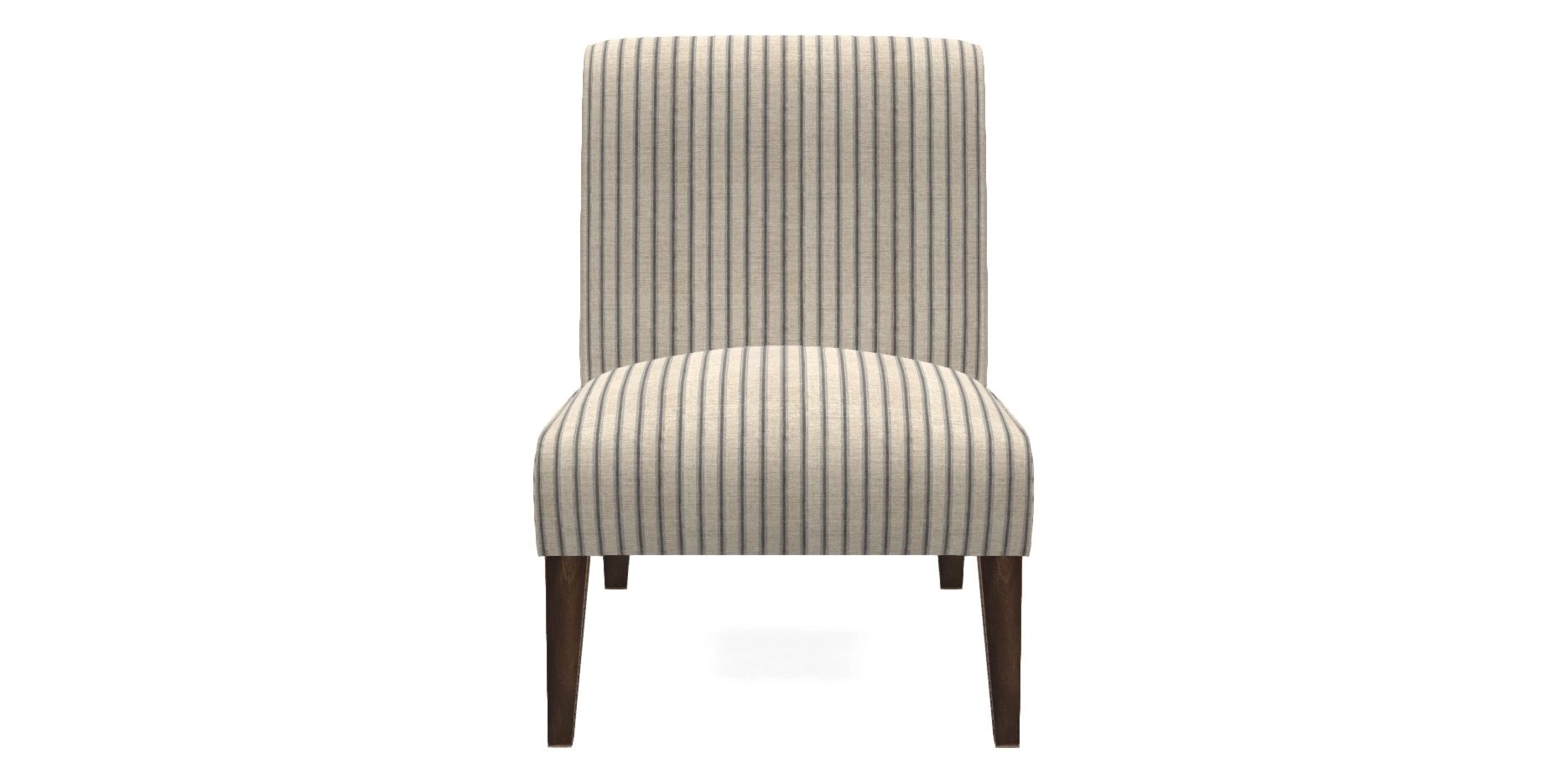 A low-height slipper chair with a petite, armless design, perfect for adding a decorative touch to a sitting room or bedroom. Its shallow seat is ideal for reading or relaxing, and the low back complements its refined look. Self-piped edges add a subtle detail.