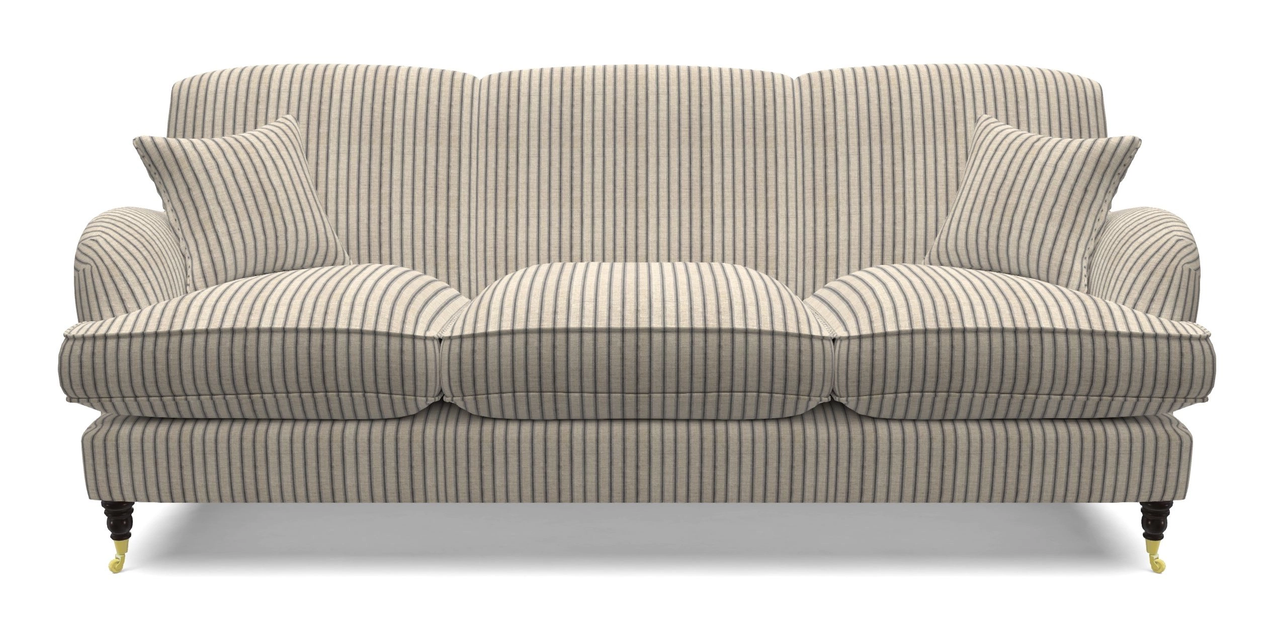 • Kentwell 4 Seater, 3 Hump Sofa in Cloth 18 Stripes - Ticking : Bible Black
