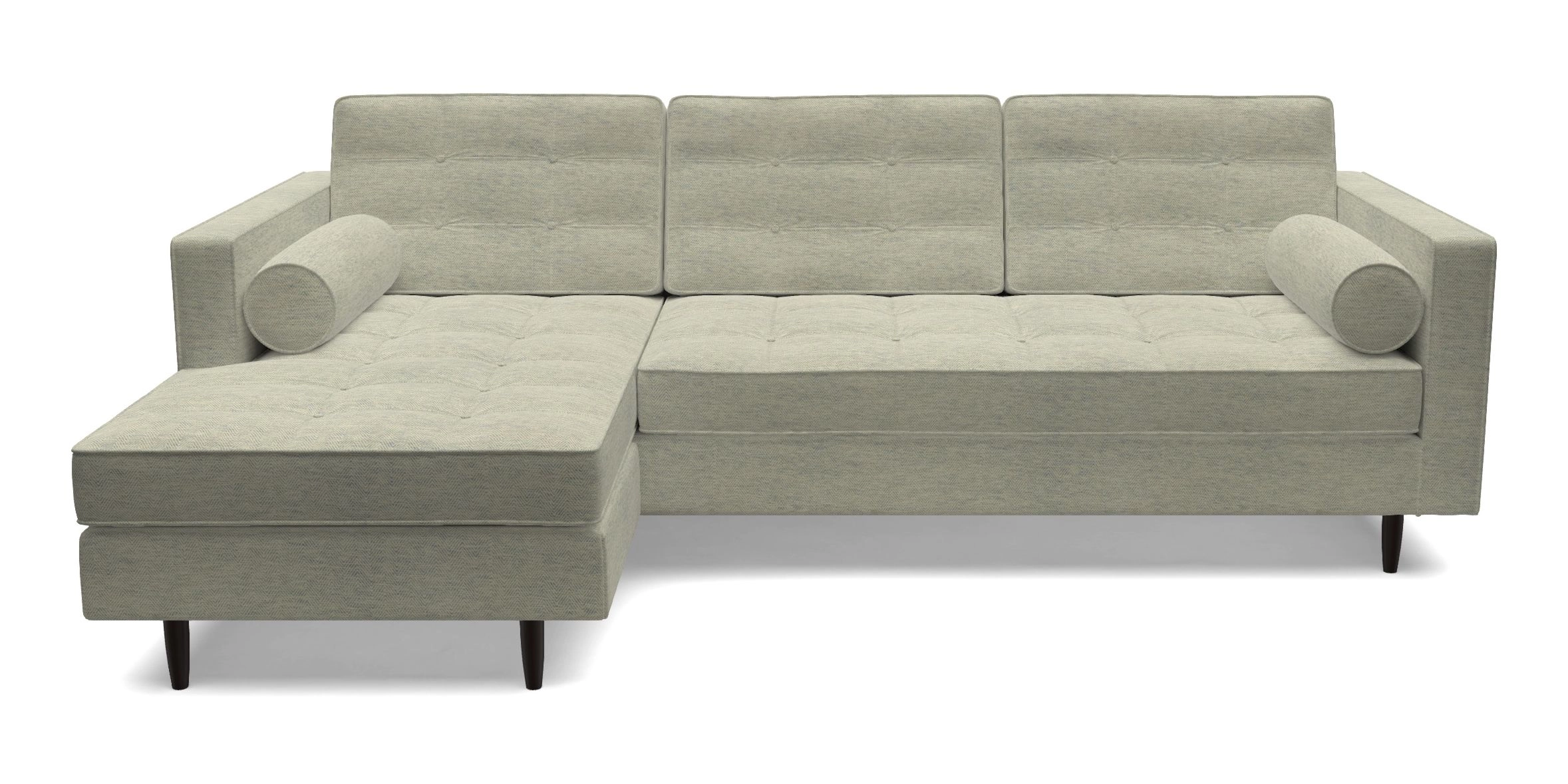 The Marylebone typifies mid-century design with clean square lines, buttoning, and low square arms. Its angular silhouette is complemented by a deep comfy seat and round bolster cushions, offering a chic yet comfortable seating option.