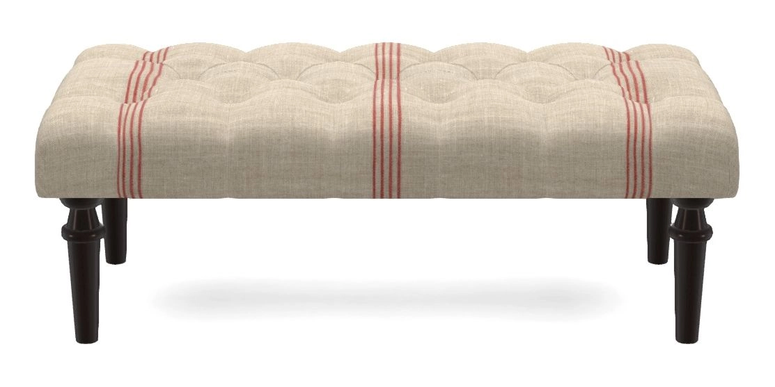 • Pentlow Bespoke Small Buttoned Footstools in Woven Linen Stripe - Baldersby : Baldersby Woven Linen Stripe Red