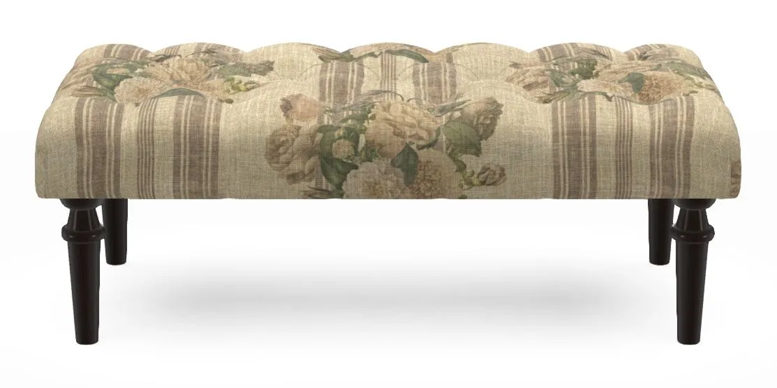 Pentlow Bespoke Small Buttoned Footstools in RHS Etta's Bouquet : Alba Truffle