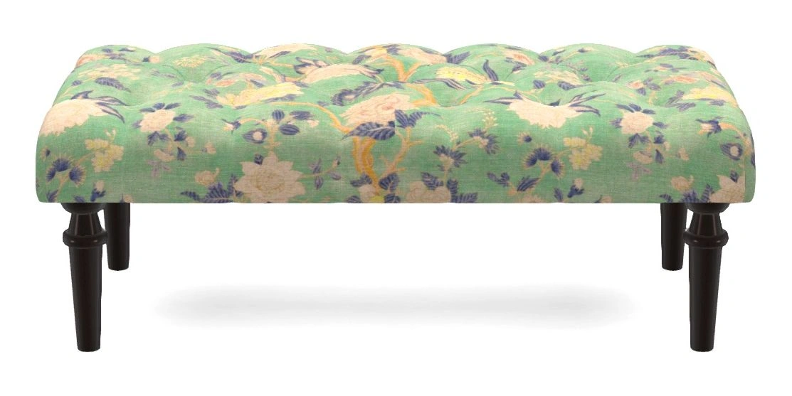 Pentlow Bespoke Small Buttoned Footstools in Floral Linen : Even So Verde