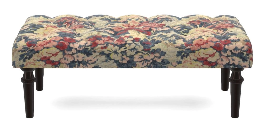 • Pentlow Bespoke Small Buttoned Footstools in Floral Linen : Sylvan Ink Magenta