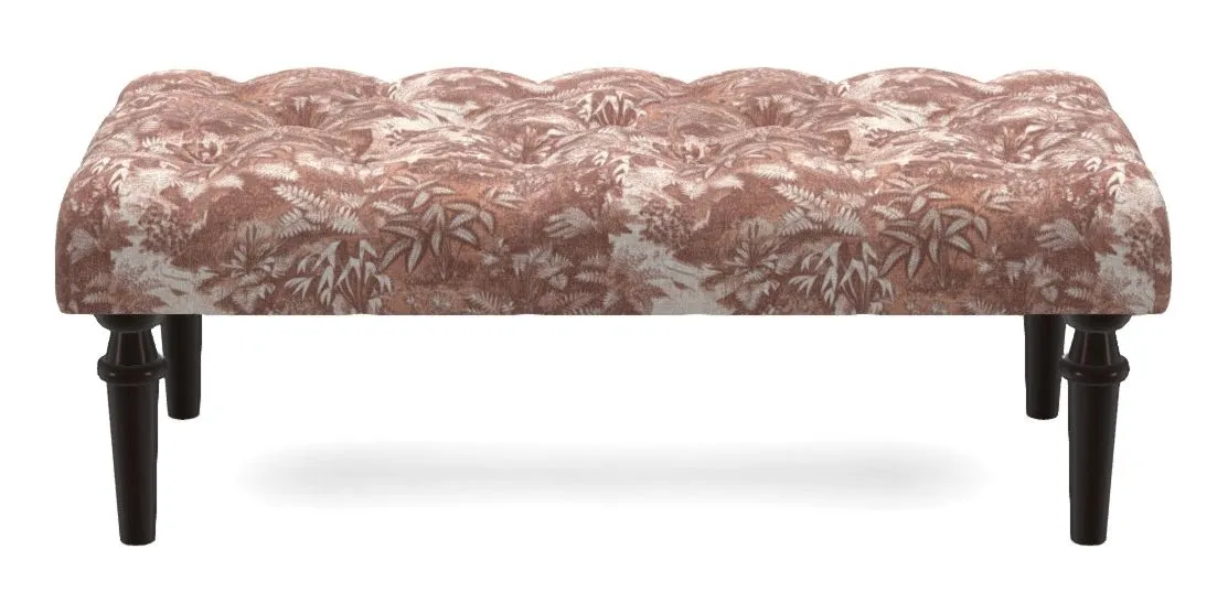 Pentlow Bespoke Small Buttoned Footstools in RHS Botanicals - Ferns Toile : Terracotta