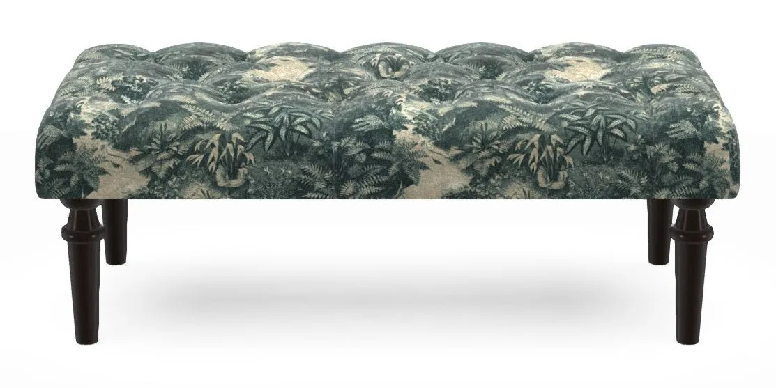 • Pentlow Bespoke Small Buttoned Footstools in RHS Botanicals on Velvet - Ferns Toile : RHS Botanicals on Velvet - Ferns Toile Emerald
