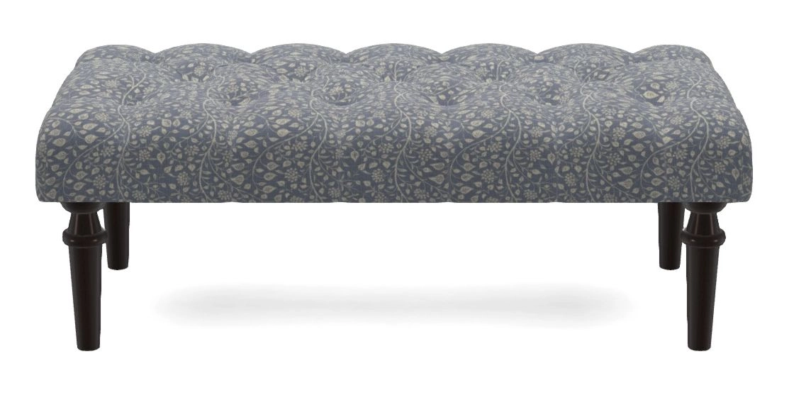 Pentlow Bespoke Small Buttoned Footstools in RHS Collection - Gertrude Jekyll Small Trailing Vine : Blue