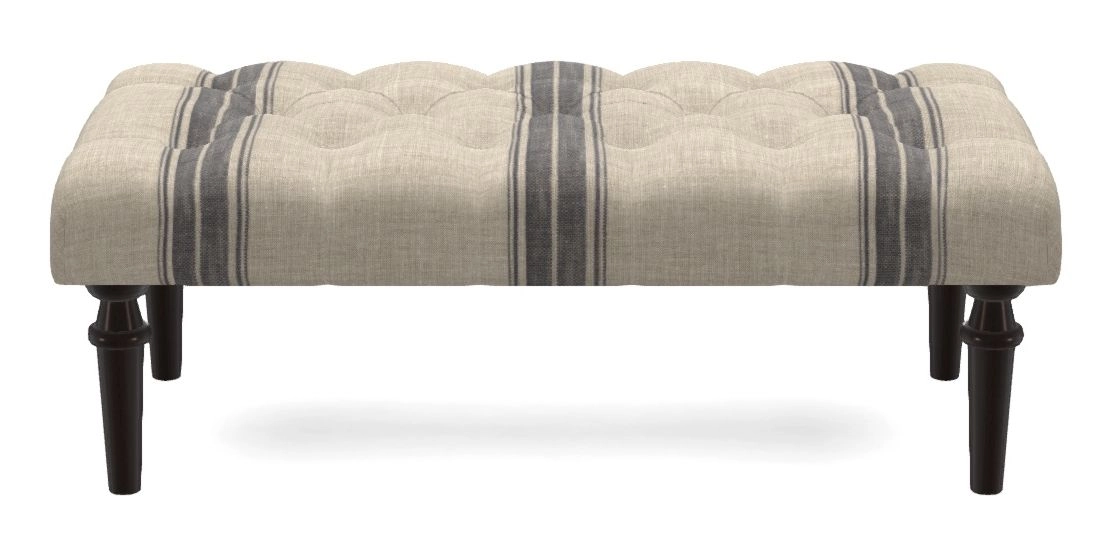• Pentlow Bespoke Small Buttoned Footstools in Woven Linen Stripe - Ganton : Ganton Woven Linen Stripe Blue