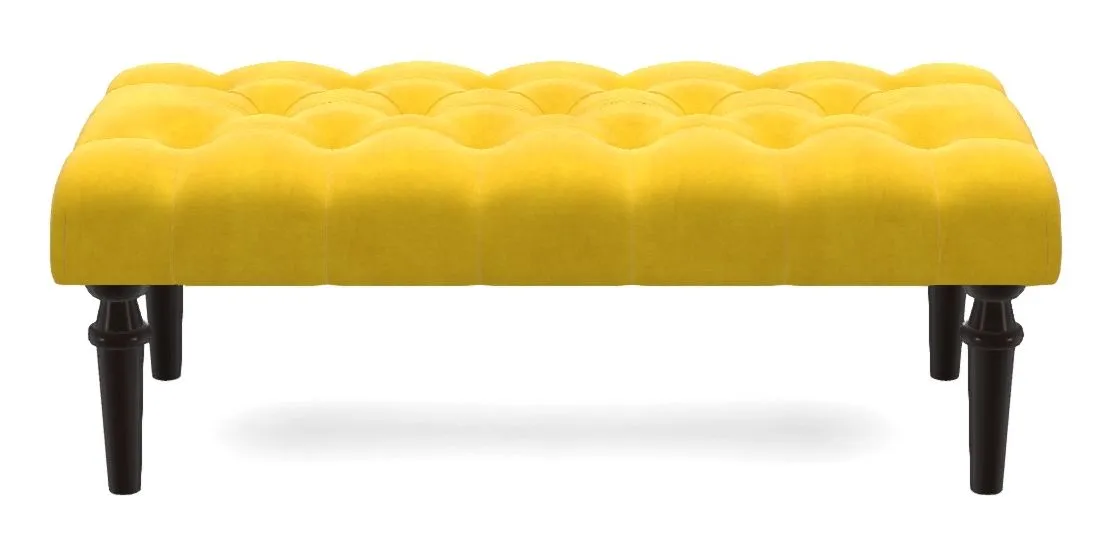 • Pentlow Bespoke Small Buttoned Footstools in House Clever Velvet : Lemon