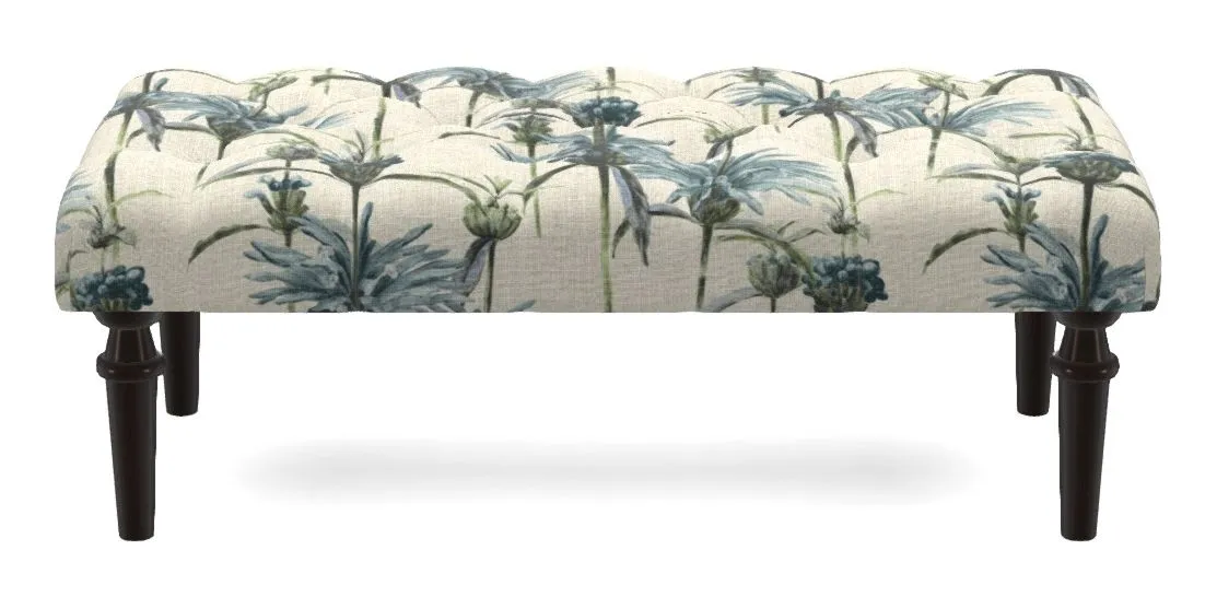 • Pentlow Bespoke Small Buttoned Footstools in RHS Botanicals - Henry Moon Lions Tail : Teal