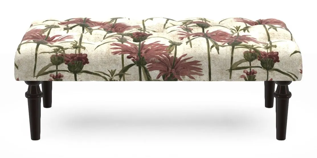Pentlow Bespoke Small Buttoned Footstools in RHS Botanicals on Velvet - Henry Moon Lion's Tail : Rose