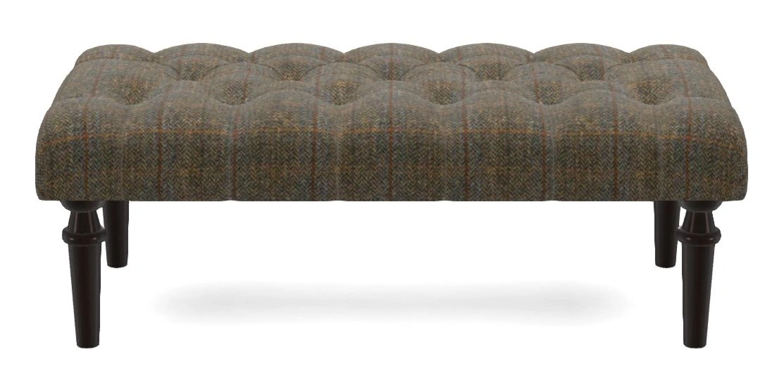 Pentlow Bespoke Small Buttoned Footstools in Harris Tweed House : Harris Tweed Blue