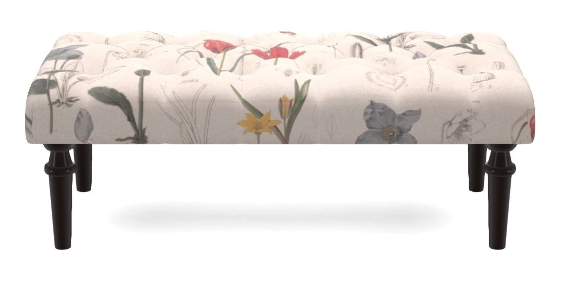 Pentlow Bespoke Small Buttoned Footstools in RHS Collection - Lilian Snelling Design : Bulbs Linen