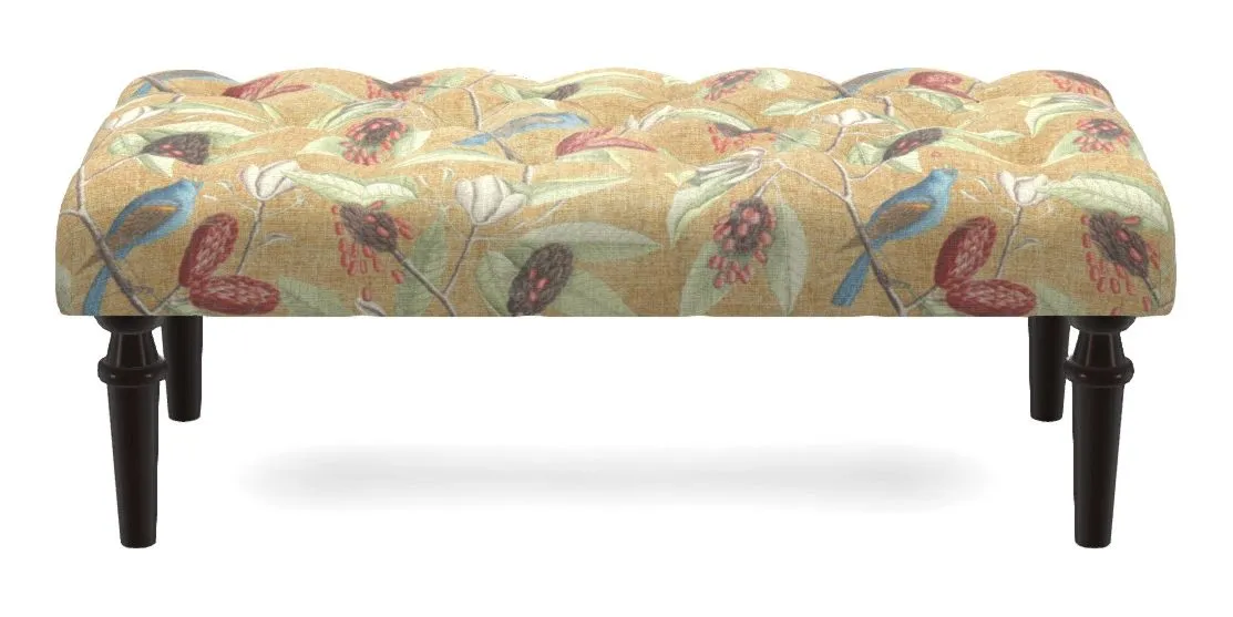• Pentlow Bespoke Small Buttoned Footstools in RHS Botanicals - Mark Catesby Grosbeak : Corn