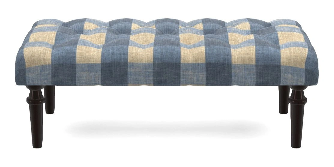 Pentlow Bespoke Small Buttoned Footstools in Sussex Gingham Large : Sky