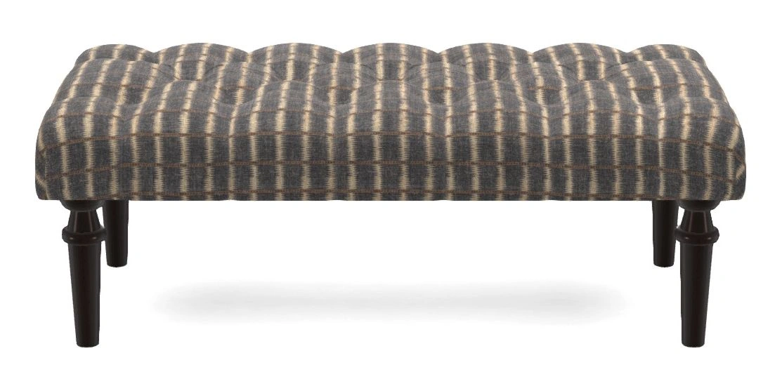 Pentlow Bespoke Small Buttoned Footstools in V&A Threads of India on Linen - Ikat Mirage : Ebony