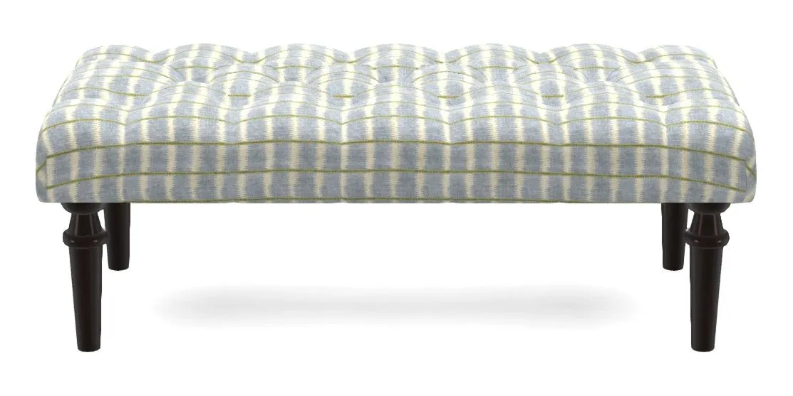 Pentlow Bespoke Small Buttoned Footstools in V&A Threads of India Opulent Velvets - Ikat Mirage : V&A Threads of India Opulent Velvets - Ikat Mirage Powder Blue