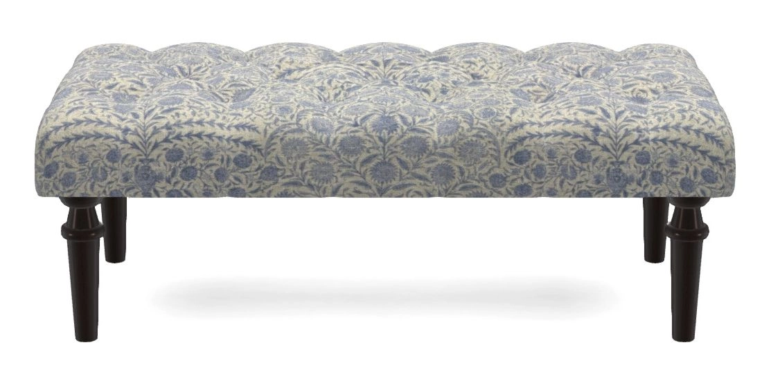 Pentlow Bespoke Small Buttoned Footstools in V&A Threads of India - Mughal Arbour : Denim