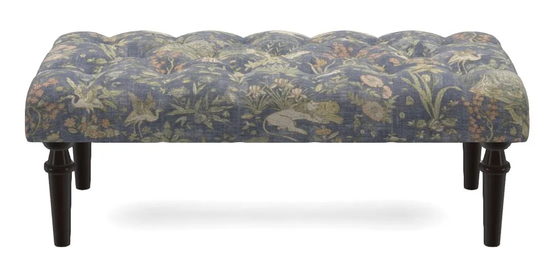 Pentlow Bespoke Small Buttoned Footstools in V&A Threads of India - Mughal Garden Safari : Ink
