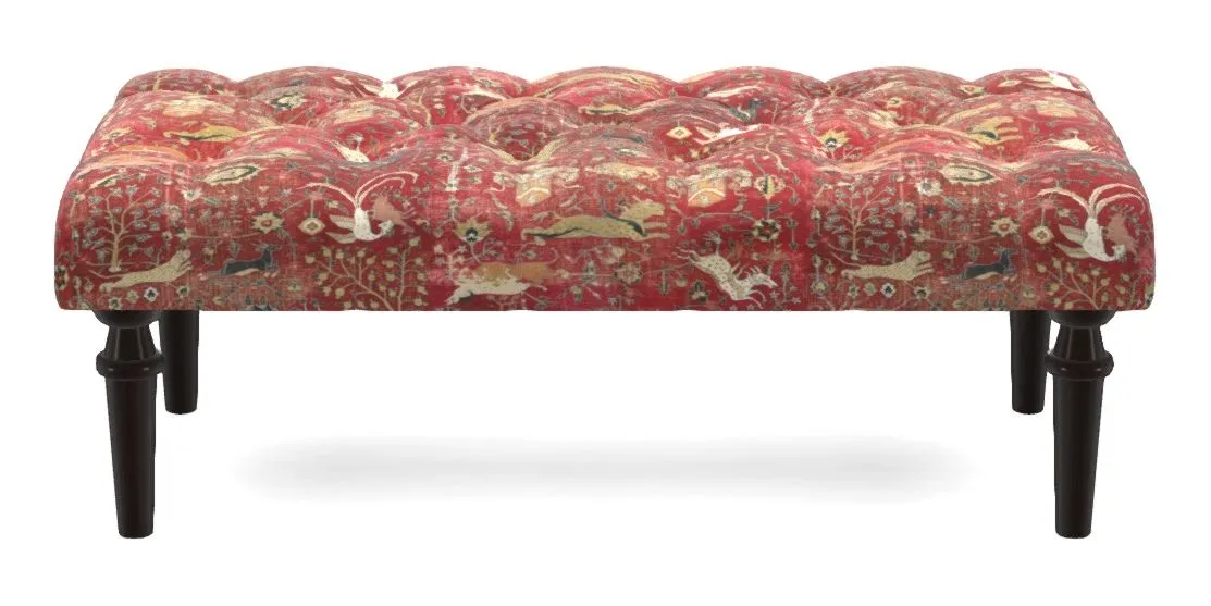 Pentlow Bespoke Small Buttoned Footstools in V&A Threads of India Opulent Velvets - Lahore Dynasty : V&A Threads of India Opulent Velvets - Lahore Dynasty Rouge