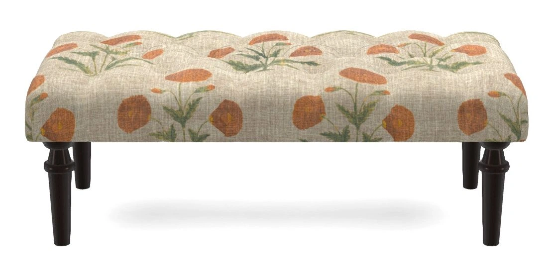 • Pentlow Bespoke Small Buttoned Footstools in V&A Threads of India on Linen - Regal Poppy : Marigold