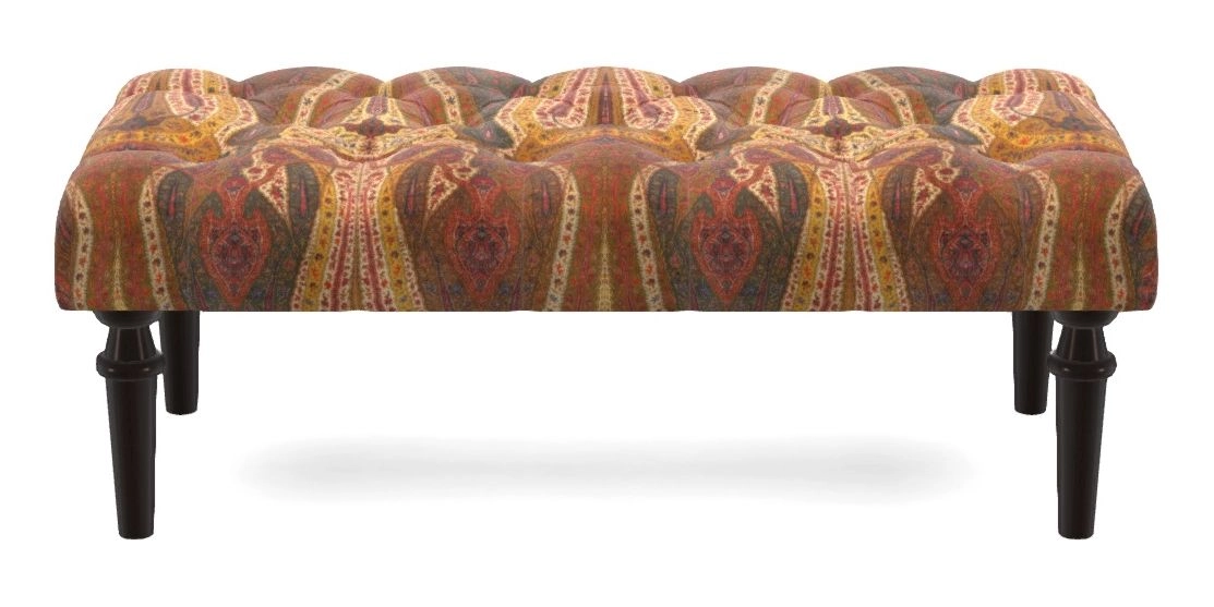 • Pentlow Bespoke Small Buttoned Footstools in V&A Threads of India Opulent Velvets - Paisley Splendour : V&A Threads of India Opulent Velvets - Paisley Splendour Flame