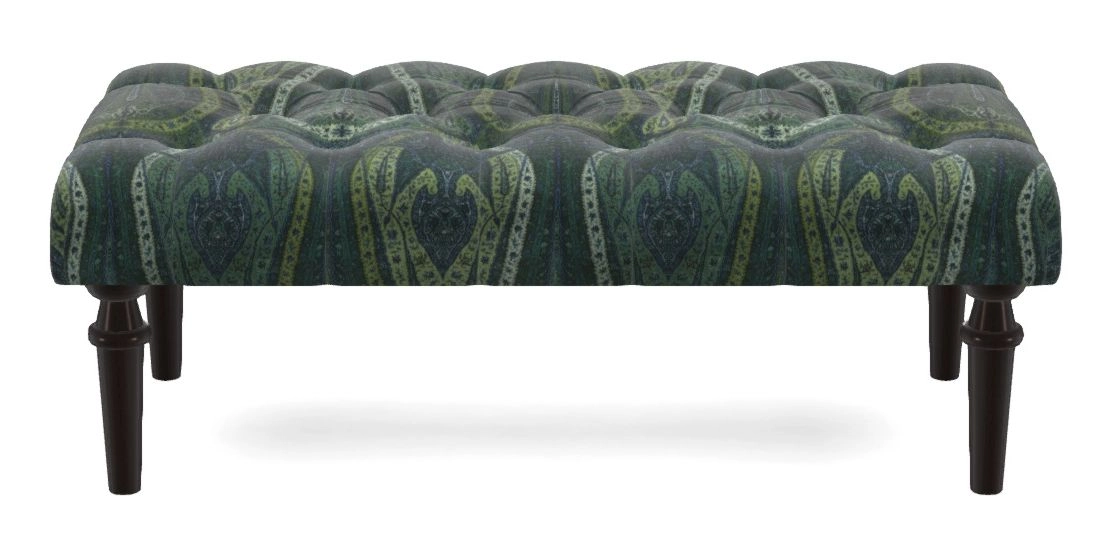 Pentlow Bespoke Small Buttoned Footstools in V&A Threads of India Opulent Velvets - Paisley Splendour : V&A Threads of India Opulent Velvets - Paisley Splendour Hunter