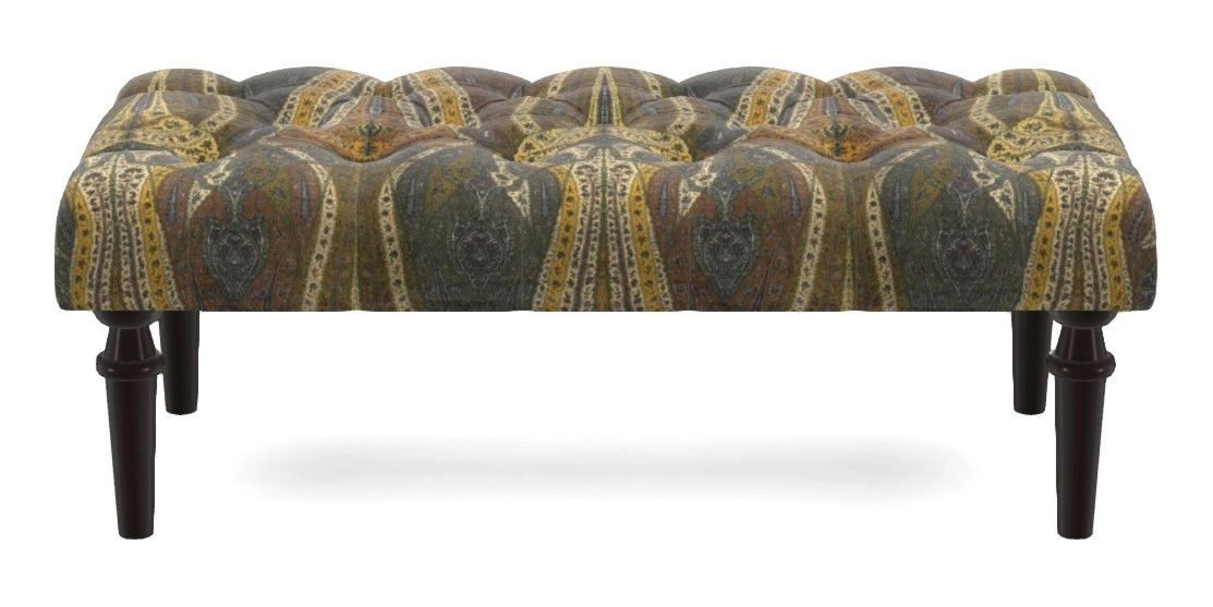 • Pentlow Bespoke Small Buttoned Footstools in V&A Threads of India Opulent Velvets - Paisley Splendour : V&A Threads of India Opulent Velvets - Paisley Splendour Olive