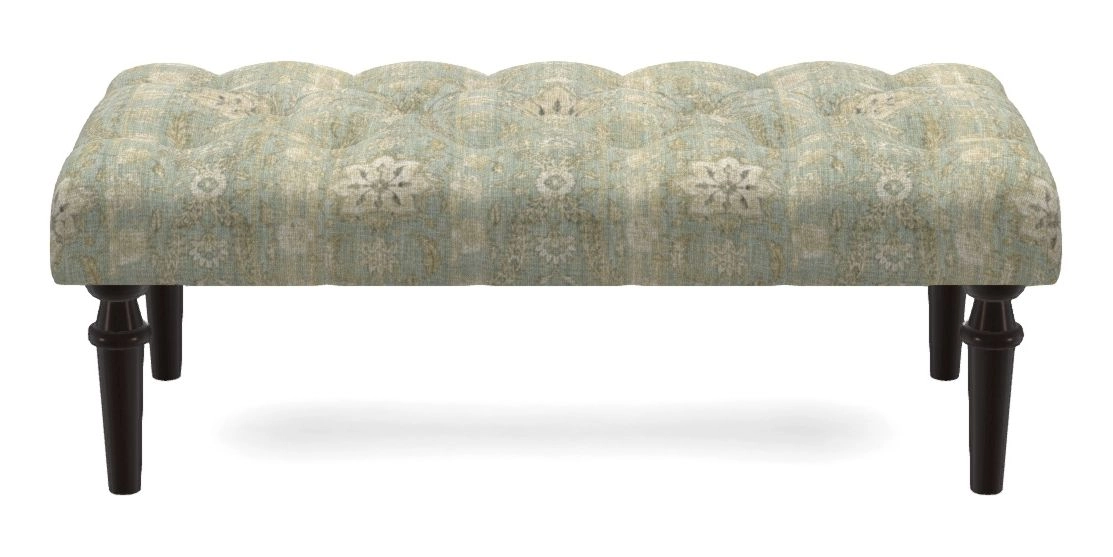 • Pentlow Bespoke Small Buttoned Footstools in V&A Threads of India - Regal Arabesque : Sage
