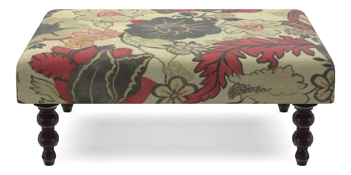 • Porthallow Bespoke Footstools A in Floral Linen : Kincsem Obsidian