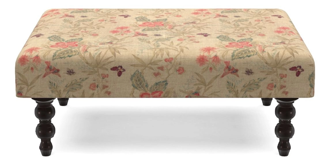 Porthallow Bespoke Footstools A in Floral Linen : Shangri-la Pebbles