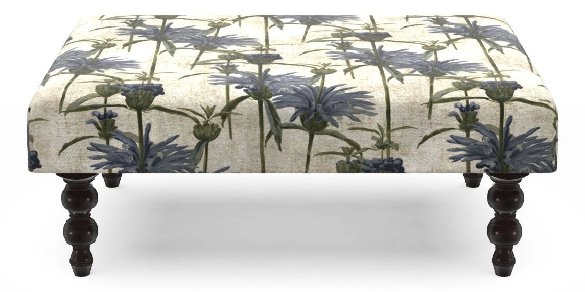 Porthallow Bespoke Footstools A in RHS Botanicals on Velvet - Henry Moon Lion's Tail : Cornflower