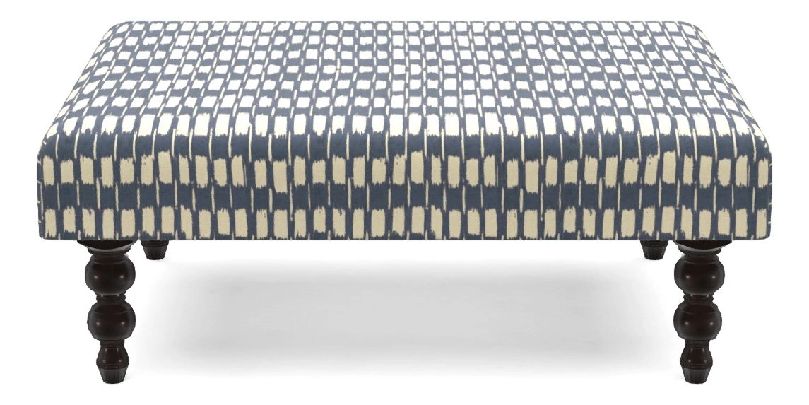 Porthallow Bespoke Footstools A in V&A Brompton Collection - Ikat : Midnight Blue