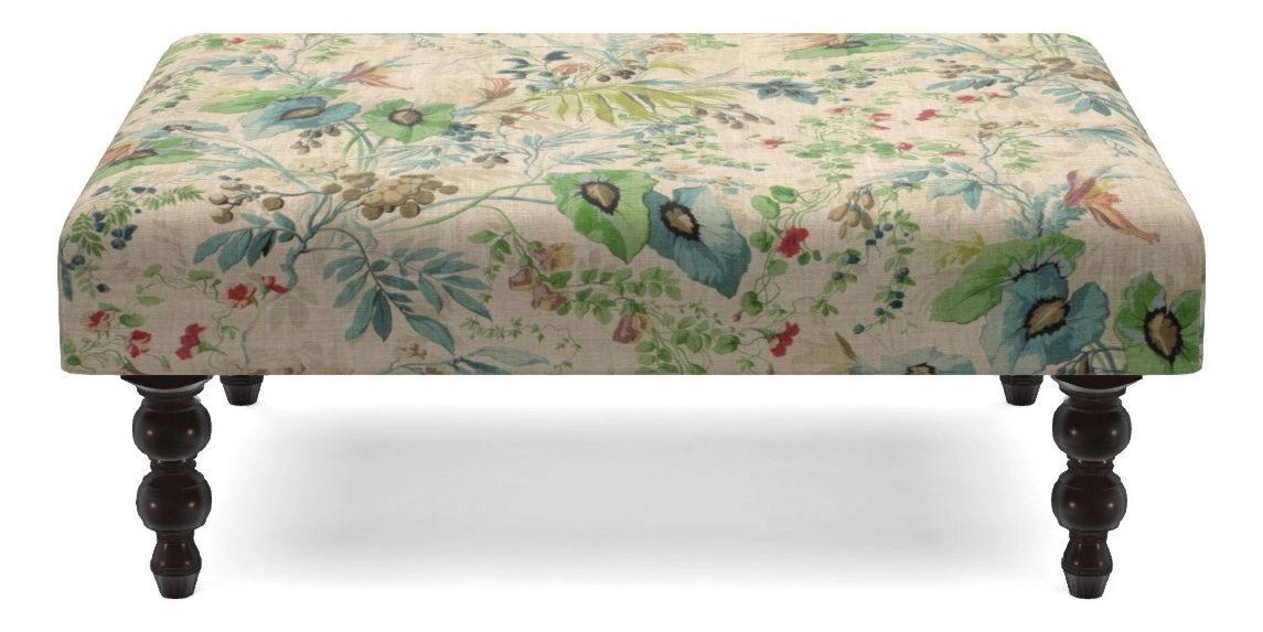 Porthallow Bespoke Footstools A in Jungle Jaded Linen : Natural