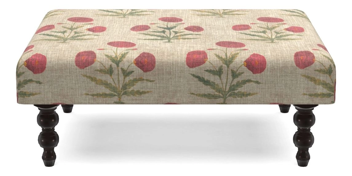 Porthallow Bespoke Footstools A in V&A Threads of India on Linen - Regal Poppy : Cardinal