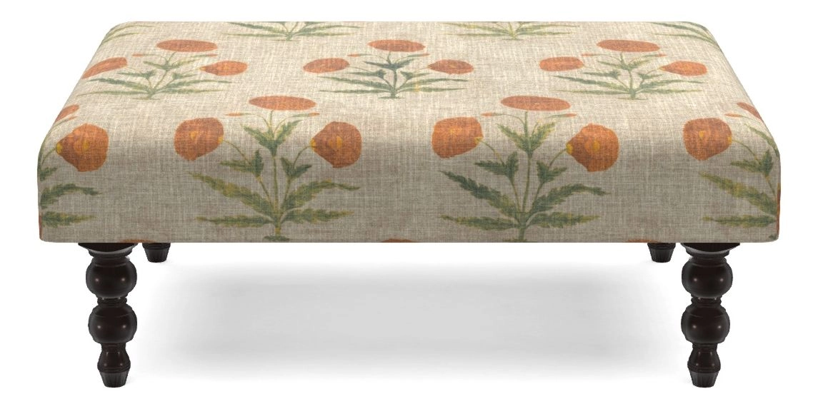 Porthallow Bespoke Footstools A in V&A Threads of India on Linen - Regal Poppy : Marigold