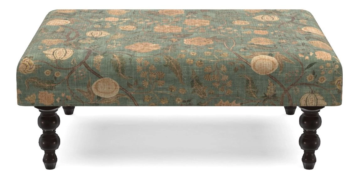 Porthallow Bespoke Footstools A in V&A Threads of India on Linen - Tree of Life : V&A Threads of India on Linen - Tree of Life Sandstone
