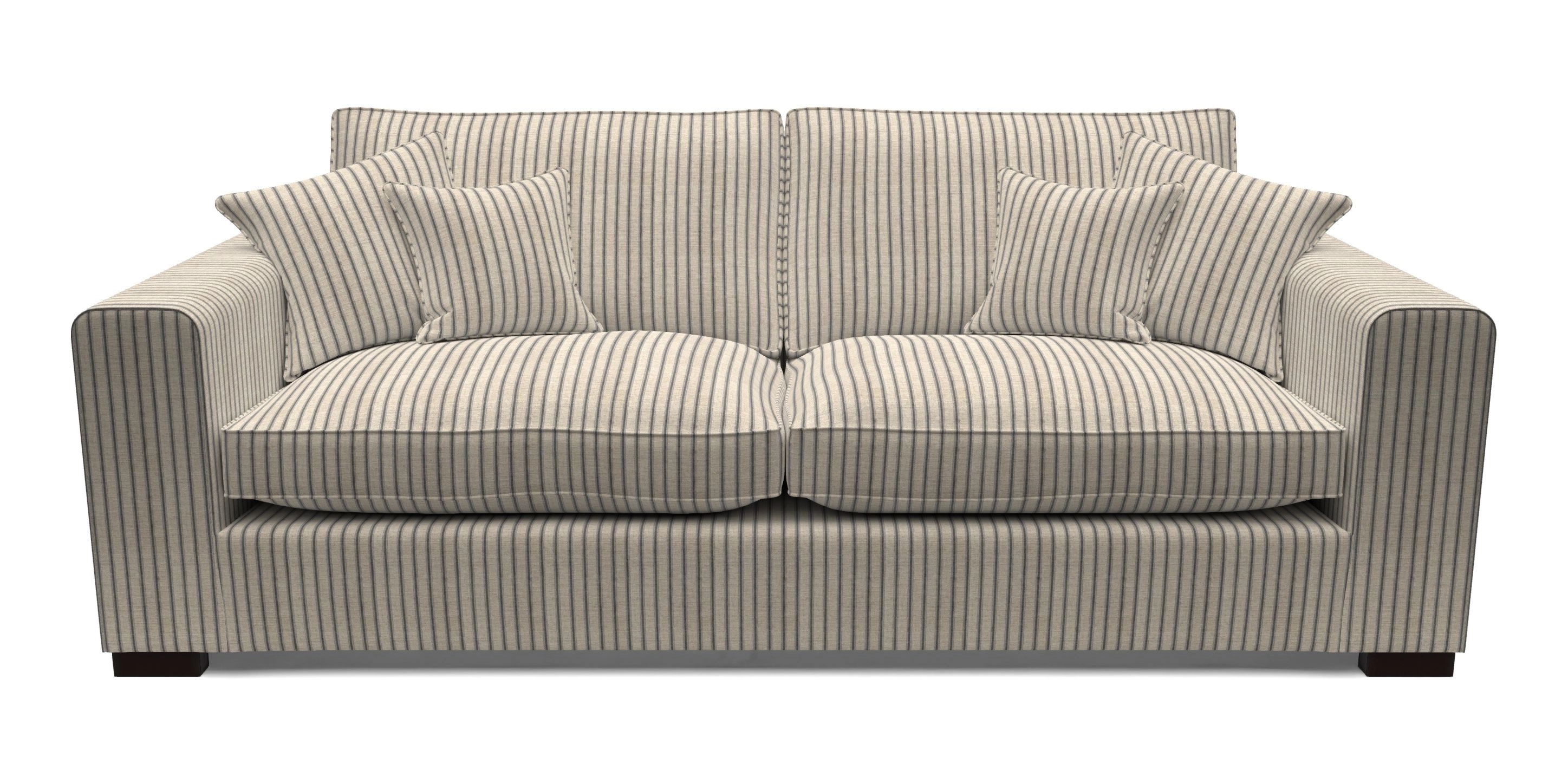 • Saxmundham 4 Seater Sofa in Cloth 18 - Stripe Ticking : Bible Black