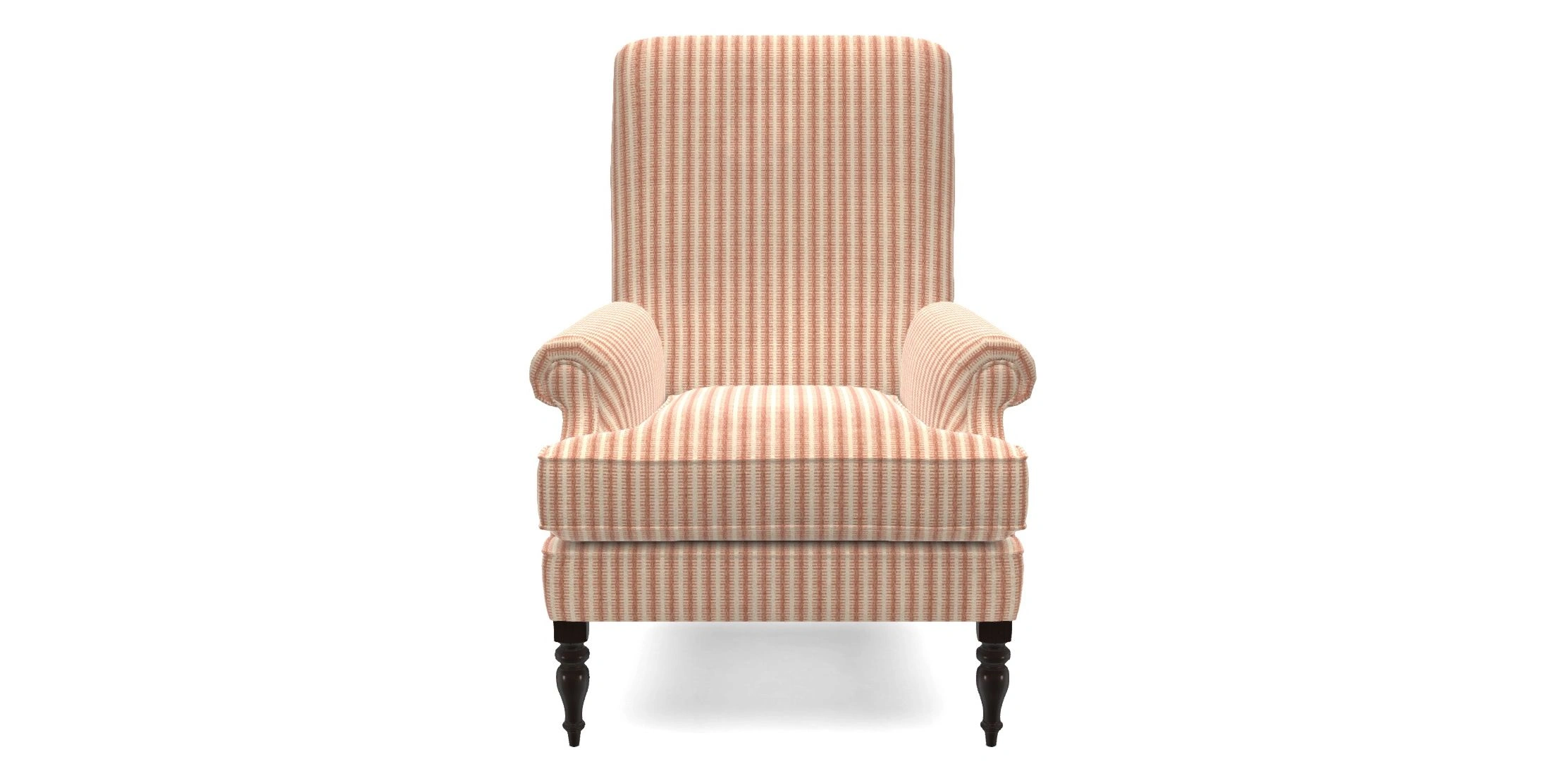 A classic armchair design with a compact profile, featuring a fixed back, and deep, cushioned seat. Its inset scroll arms and self-piped detailing add a touch of refinement, while the firm seat and high back ensure both comfort and support.